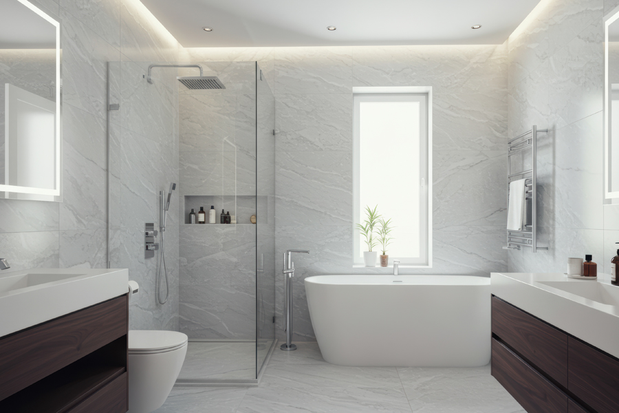 Low contrast options include soft whites, light greys, creams and subtle neutrals. These choices allow other features — such as professional bathroom tiling Gold Coast specialists install — to take centre stage.